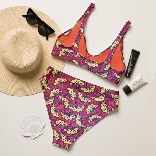 Fleur Bloom High-Waist Bikini - Recycled UPF 50+ Performance Swimwear