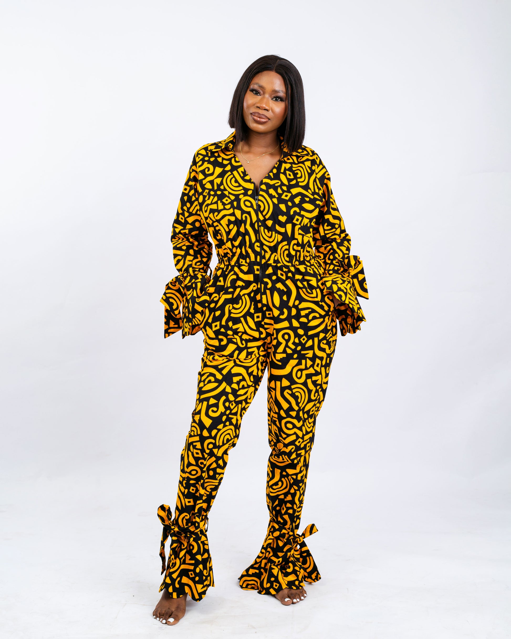 The Issa Print Jumpsuit embodies the spirit of Afro-modern luxury—where heritage textiles meet contemporary design. Created for the woman who values both presence and ease, this piece transforms traditional Ankara into a globally relevant wardrobe essential.
